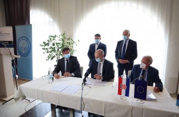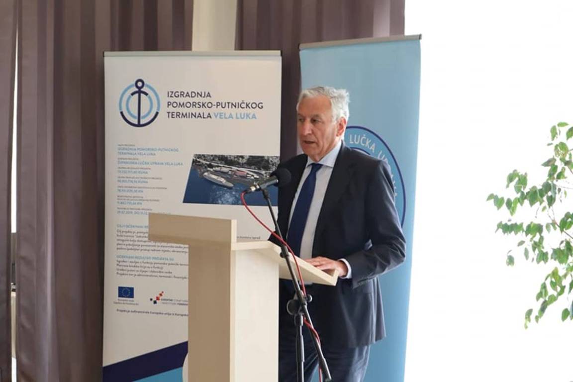 Ravnatelj Županijske lučke uprave Vela Luka Boris Žuvela i predstavnici tvrtke Pomgrad Inženjering d.o.o. , Nikša Musulin i Tono Hrovat, sklopili su u ponedjeljak, 26. travnja Ugovor o izvođenju radova na izgradnji pomorsko-putničkog terminala Vela Luka. Svečanost potpisivanja održana je u dvorani hotela Korkyra u Veloj Luci. Među uzvanicima bili su ministar mora, prometa i infrastrukture Oleg Butković, državni tajnik Ministarstva mora, prometa i infrastrukture Josip Bilaver, te župan Dubrovačko-neretvanske županije Nikola Dobroslavić sa zamjenicima Žaklinom Marević i Joškom Cebalom.